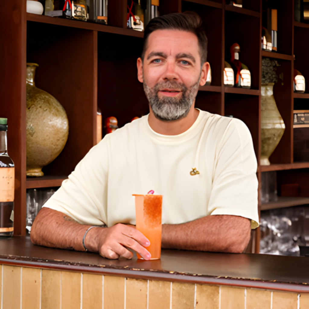 La victoire est revenue à Xavier Gilly, de l’Intercontinental Marseille. Si ce bartender expérimenté a séduit, c’est grâce à sa maturité et à son sens du détail. « J’aime Patrón et je voulais voir ce qui se passait sur la scène méditerranéenne. Je suis de la vieille école ! », confie le lauréat. Son cocktail ? Un twist visuel et élégant de la Paloma, habillé d’un rim pamplemousse-orange déshydraté : « C’est un fancy drink, facilement reproductible, avec un équilibre simple mais efficace. » Pour le rituel, il a détourné un filtre à café en verre utilisé comme entonnoir contenant un cube de clear ice. La tequila, versée en filet, s’écoulait en révélant des notes vanillées à la fois fraîches et inattendues. Un détail technique qui a fait la différence.