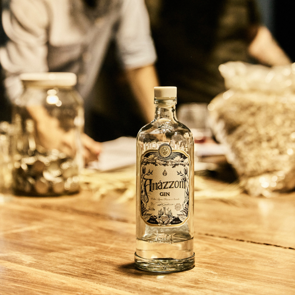 Le premier gin lancé, Amázzoni Classic, devait être agréable et lisible pour tous les consommateurs. Nous avons donc mélangé, à parts égales, 10 plantes du Nouveau Monde et de l’Ancien Monde dans un gin à 42% dont 5 d’origine brésilienne : la noix du Brésil, le cipó-cravo, le maxixe ou le victoria regia.