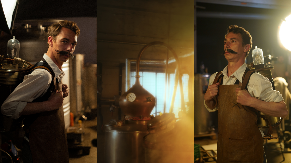 Ma toute première vidéo avait été tournée au téléphone portable, pendant le confinement. Cette fois, j’ai voulu aller beaucoup plus loin : c’est un véritable court-métrage avec effets spéciaux, réalisé avec trois amis venus du cinéma — Maël Charpentier, William Claegman et Titouan Charpentier. Un projet artistique à part entière dans l’univers des spiritueux. L’esthétique s’inspire de Tim Burton et de Charlie et la Chocolaterie. On y suit un chercheur fou tentant de distiller l’orage grâce à son « Captur’Nuage ». Et il y parvient. Plus de 400 heures de montage ont été nécessaires. Un making-of de 45 minutes sortira prochainement pour dévoiler les coulisses et le tournage.