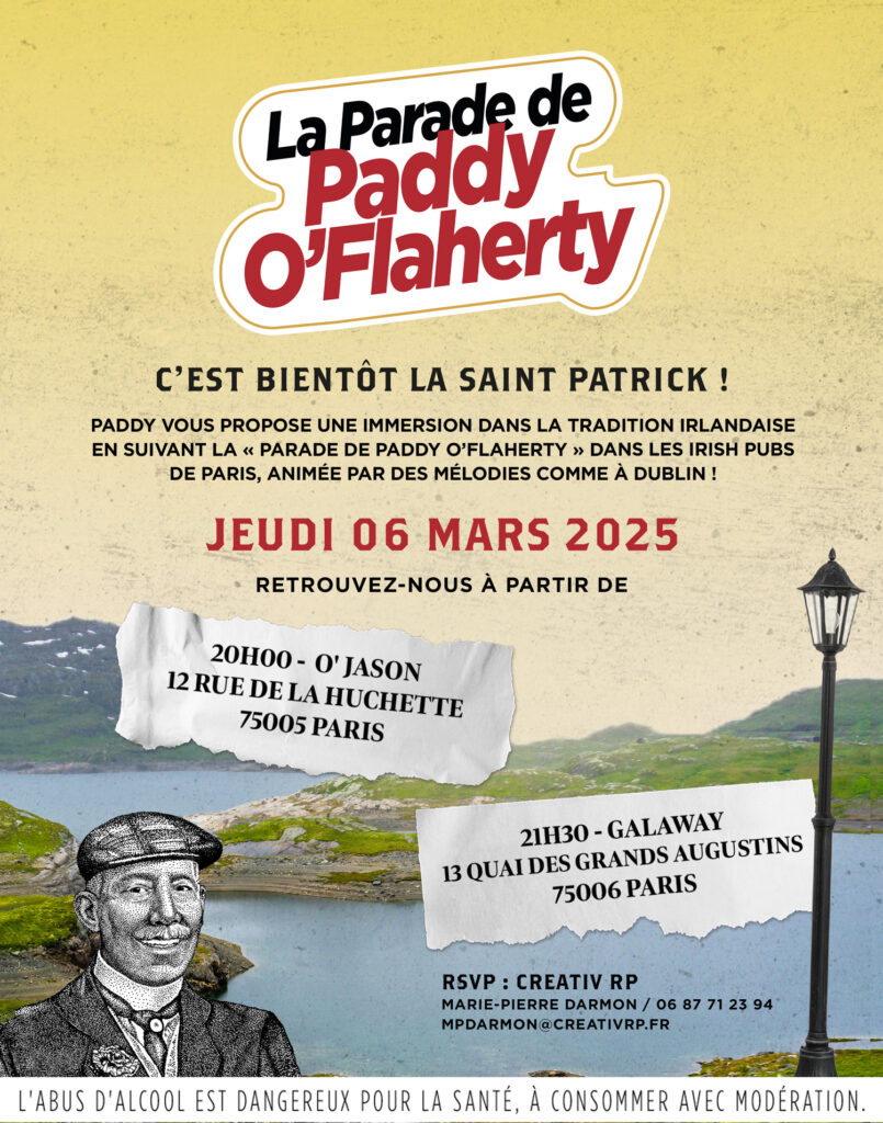 A la Saint Patrick, suivez la Parade de Paddy O’Flaherty, partout en France ! PADDY, le célèbre Irish Whisky propose une expérience 100% authentique avec une tournée dans 5 villes dont Paris.
