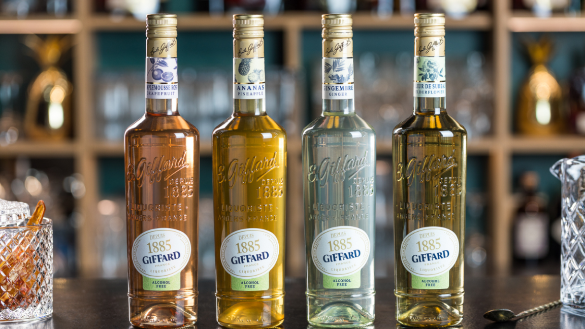 Édith Giffard a dû s’intéresser parallèlement à une autre problématique : quels fruits sont intéressants pour des recettes adaptées à des twists de cocktails classiques sans alcool, et lesquels sont compatibles avec cette méthode de fabrication ? « Nous avons rapidement défini une gamme de 4 produits avec un profil aromatique particulier : pour la fleur de sureau, le côté floral ; pour le gingembre, les épices ; pour l’ananas, l’exotisme ; enfin pour le pamplemousse, l’agrume. Une gamme embouteillée dans les mêmes flacons que ceux de nos liqueurs, en indiquant non pas la mention “liqueur sans alcool” mais bel et bien “Alcohol Free” », souligne cette experte de la liqueur française.
